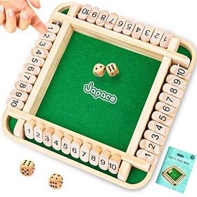 Japace Shut The Box Spiel, Brettspiel aus Holz, 4 Spieler Würfelspiel Mathematik Lernspielzeug Kinder Brettspiel Familie ab 3 4