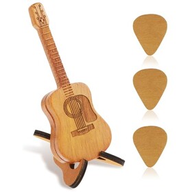 LLOUSSAK Holz Plektrumbox für Akustikgitarre mit Ständer, Gitarrenplektrumbox Gitarren Plektren Halter, 3 Picks Gitarrenplektre