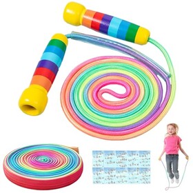 Springseil Kinder, Dehnbares Springseil, 250CM Jump Rope Kinder mit 300cm Regenbogen-Springseil und Holzgriff, Springseil Kinde