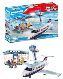 PLAYMOBIL City Action 71153 Flughafen mit Flugzeug und Tower, Mit 2 in 1 Wendekarton als umweltfreundliche Verpackung, Spielzeu