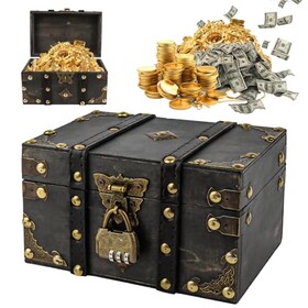 TOSAVGA Vintage Holz Schatztruhe, Aufbewahrung Schatzkiste Holz mit Schloss, Schatzkiste Kinder, Schatztruhe, Schatztruhe Kinde