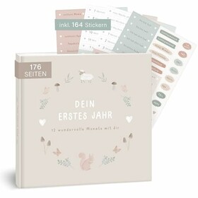 mintkind® Babyalbum "Mein erstes Lebensjahr" Wald + Sticker Set | Baby Fotoalbum zum Selbstgestalten | Baby Geschenk für Mädche