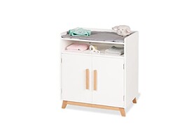 PINOLINO Puppenwickeltisch Marit, Puppenmöbel aus Holz, skandinavisch, weiß und klar lackiert, inkl. Wickelauflage, 2 Türen, 1