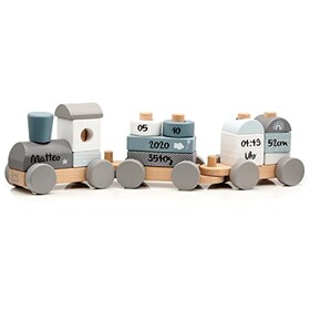 KIDSLINO Holz Eisenbahn blau - personalisierbar, zur Geburt Jungen, Handmade Holzspielzeug mit Steckformen, Personalisierte Ges