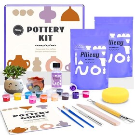 Pllieay Töpferset für Anfänger - Lufttrocknendes DIY Set für Erwachsene, Selbsttrocknender Ton zum Kreativ Töpfern, Keramik Kre