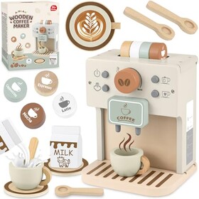 Airlab Kinderküche Kaffeemaschine Kinder Holz, Spielküche Zubehör Kaffeeservice Spielset, Küchengeräte Kaffeeset Kinder Spielze