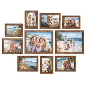 SONGMICS Bilderrahmen 10er Set, 16 Passepartouts, zwei 20 x 25 cm, vier 13 x 18 cm, vier 10 x 15 cm, aufhängen, aufstellen, Gla
