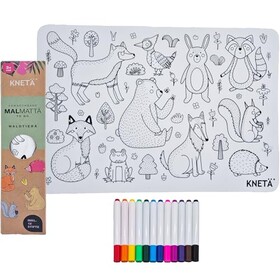 Malmatte für Kinder mit 12 abwaschbaren Stiften I Wiederverwendbare Ausmalmatte mit Waldtier-Motiven & freier Rückseite I Kreat