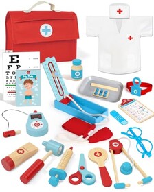 Lehoo Castle Arztkoffer - Spielzeug für Kinder ab 3 Jahre mit Arztkittel und Zubehör in Blau - Arzt-Kit für Kleinkinder