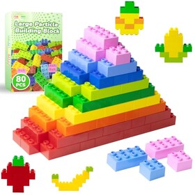Mirthben 80 Stück Große Bausteine Set, 2 Formen und 8 Farben Bauklötze, Kompatibel mit Duplo Steine und Allen führenden Marke,