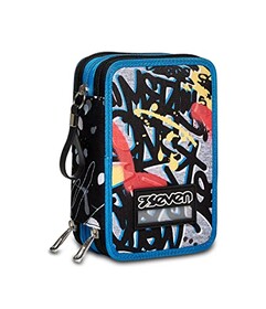 Seven Federmäppchen, Mäppchen, Mehrfarbig, Federtasche für Schreibwaren, Etui mit Stiften, Kugelschreiber, & mehr, 3 Fächer, Mä