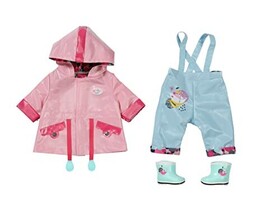 BABY born, Puppenkleidung, BABY Born Deluxe Regen Set 43 cm, Regenkleidung, Set mit rosa Regenjacke, blauer Matschhose und Gumm