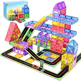 Perbabe Magnetische Bausteine, 72 Teile Magnete Kinder Stärker Magnetbausteine, Magnetische Fliesen Stadtstraßen-Set mit 2 Auto