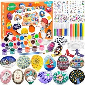 POWZOO 79 Stück Steine Bemalen Set für Kinder,mit 18 Farben,Nachtleuchtendes Steine Bemalen Bastelsets für Kinder,Kreativ Stein