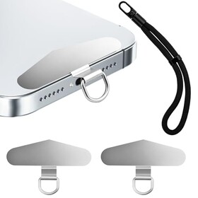 sebudion 2 Stück Edelstahl Handykette Universalpads,Handy Lanyard Pads, Handyband mit Metallring Patch, Schwarz Lanyard für Han