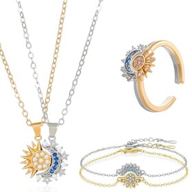 VisageVitalit Sonne und Mond Kette-Armband-Ring Set, Partner Ketten, Bff Ketten, Freundschaftsketten, Matching Schmuck für Paar