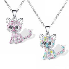 MIRKUZI Ketten für Mädchen 2 Stück, Halsketten mit süßen Katzenanhängern, Weihnachts- und Geburtstagsgeschenke für Kinder, Mädc