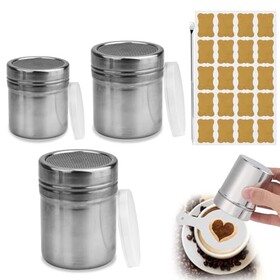 benlidoner 3 Stück Puderzuckerstreuer, Mehlstreuer mit Deckel, Edelstahl Kakaostreuer, Staubzuckerstreuer für Zucker Salz Mehl