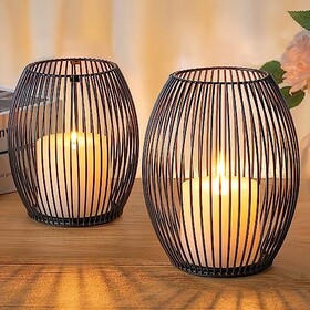 GoMaihe Kerzenständer 2er Set, Deko Wohnzimmer Schlafzimmer Badezimmer Windlicht Kerzenhalter für Stumpenkerzen Vintage Tischde