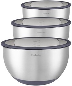 Winzbacher Edelstahl Schüssel mit GLAS-Deckel [3er Set] 1l + 2.5l + 4.5l | Rührschüssel, Salatschüssel, Schüsselset, | rutschfe