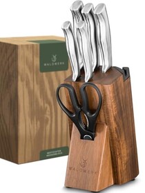 WALDWERK Messerblock - 7-teiliges Messerset mit Messerblock und integriertem Messerschärfer - Messerblock mit Messer - Küchenme