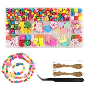 NewZC Perlenset Armbänder Kinder mit 550 Stück Bunte Holzperlen zum Auffädeln - 18 Arten Bastelperlen Holz für Selber Ketten Ha