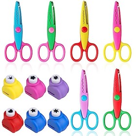NTGRTY 12er-Set Kinderschere - 6 Stk. Bastelschere, Sicherheit Schere, Gezackte Schere, 6 Stk. Motivstanzer, Ausstanzer - Kinde