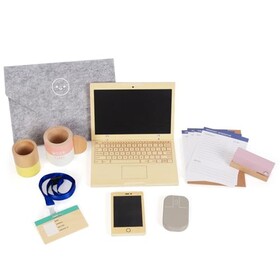 Pretend Play Home Office Set für Kinder,10Pcs Büro Playset mit hölzernem Spielzeug Laptop-Telefon für Vorschulkinder Alter 3+ J