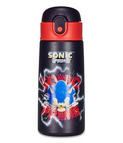 Sonic, Thermosflasche, blau und rot – für Kinder mit Strohhalm, 460 ml, BPA-frei, für Kindergarten, Grundschule – Edelstahl, Te