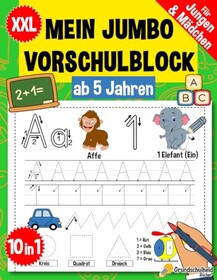 Mein Jumbo Vorschulblock: Spielend einfach Zahlen und Buchstaben lernen plus Schwungübungen - A4 Vorschule Übungshefte ab 5 Jah