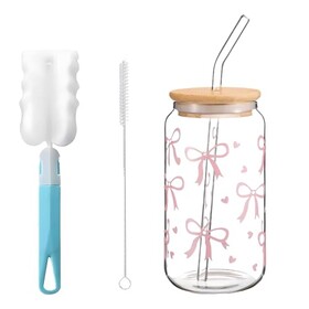 Vauki 16OZ Trinkglas mit Strohhalm & Deckel mit 3D-Schleifenmuster - Inkl. Silikon-Reinigungsbürste, 550ml Spülmaschinenfest fü