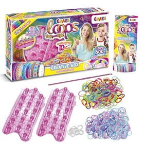 CRAZE LOOPS | Loom Bänder Kreativ Box mit 600 Gummibänder, Verschlüsse, Knüpfboards & Häkelnadel - Kinder Bastelset Halsketten,