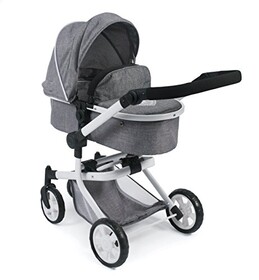 Bayer Chic 2000 - Puppenwagen Mika, 2in1 Kombipuppenwagen für Kinder von 4 bis 8 Jahren, Jeans grau, 73 x 41 x 82 cm