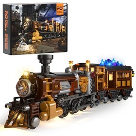 FUNWHOLE Erzbahn Beleuchtetes Baustein-Set - Steampunk Spielzeugzug mit LED Licht, Modularer Konstruktionsbausatz, 1159 Teile f