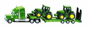 siku 1837, Tieflader mit 2 John Deere Traktoren, 1:87, Metall/Kunststoff, Grün, Klappbare Heckklappe