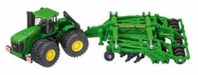 siku 1856, John Deere 9630 Traktor mit Amazone Centaur Grubber, 1:87, Metall/Kunststoff, Grün, Hochklappbare Grubberelemente