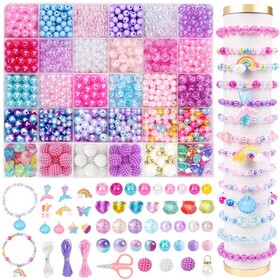 1200+ Stück Perlen zum Auffädeln Kinder, Bunte Anhänger Meerjungfrau perlen Schmuck Ketten Bastelset für DIY Armbänder Handwerk