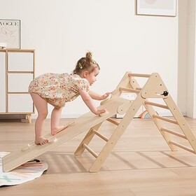 Giant bean Faltbares Holz klettergerüst Indoor Set, Kleinkind Holzkletter Pikler Dreieck mit Schieberampe, Baby-Klettergerüst,