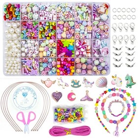 Perlen zum auffädeln Kinder Schmuck Schnurset, DIY Freundschaftsarmbänder Halsketten Kunsthandwerks-Set für Mädchen Kinder, 24