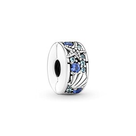 PANDORA Moments Tropischer Seestern & Muschel Clip-Charm aus Sterling-Silber mit Cubic Zirkonia, Kompatibel Moments Armbänder,