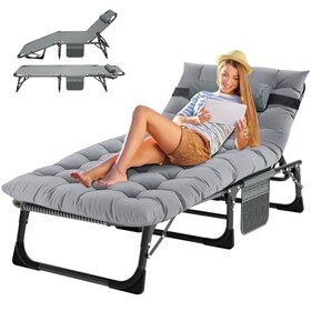MOPHOTO Sonnenliege, Faltbare Sonnenliege für den Garten mit Matratze, verstellbare Rücken- und Beinauflagen, tragbar, für drin