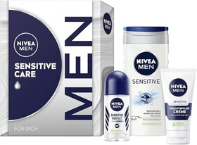 NIVEA MEN Sensitive Care Geschenkset, Pflegeset mit Pflegeprodukten für sensible Haut, Geschenkbox mit Pflegedusche, Gesichtspf