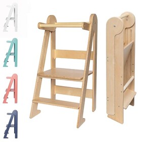 TOYBOX Montessori Kleinkind-Turm & Faltbarer Holz Tritthocker - Faltbare Küchenhilfe für Kleinkinder, Kinder Lernen & Steh-Möbe