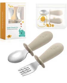 Maverton Kinderbesteck Set mit Gravur + Holzbox mit Aufdruck - aus Edelstahl - mit Tieraufdruck - 4-teilig - personalisierbar -