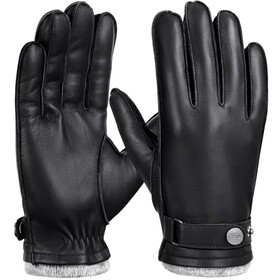 GSG SINCE 1998 Herren Lederhandschuhe Winter – Thermo-Handschuhe mit Touchscreen aus weichem Lammleder, warm gefüttert mit Woll