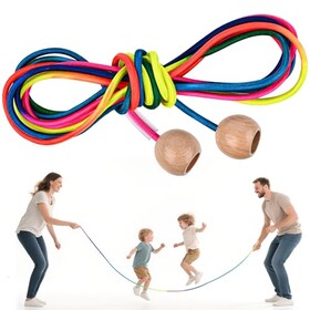 LustLocke Seilspringen Kinder, 5 Meter Springseil für Mehrspieler, Springseil Lang Mehrspringer Kinder mit Hölzerne Kugelgriff,