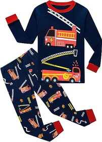 EULLA Kinder Jungen Schlafanzug Langarm Baumwolle Winter Pyjama Set Feuerwehrwagen Zweiteiliger Nachtwäsche 5 Jahre alt Größe 1