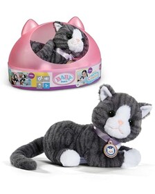 BABY born Meine Katze Cookie - Kuscheltier mit Sound & Vibration - Inkl. Katzenkörbchen - Funktioniert mit Batterien - Geeignet