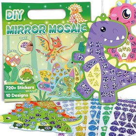 Barlone 10 Stück Dino Mosaik Bastelset Klebebilder für Kinder, DIY Selbstklebend Sticky mit Bunte Laseraufkleber Mosaics Bastel