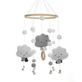 Mobile Baby Windspiele, Puppe , Holz mit Filzbällen 3D Wolken, Bettglocke Anhänger für Babybett Jungen und Mädchen